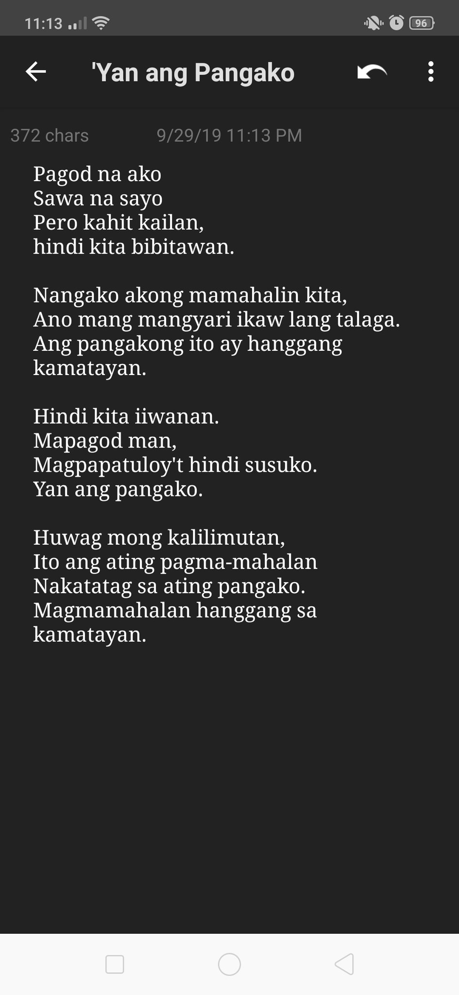 Unknown anonymous subaybayan we just met you. Nagugutom na ako 32. 782017 Dahil sa puso ko ikaw pa rin Kahit tumanda ka nang malabo ang tingin Nag-sisigawan dahil wala ng marinig Kulubot na ang balat Nakakalbo na rin Hanggang dulo kita mamahalin Ikaw lang ang nais ng puso ko Sadyang wala ng papantay sayo Hindi ako susuko Kung may Forever naman Bat di natin subukan Hindi.