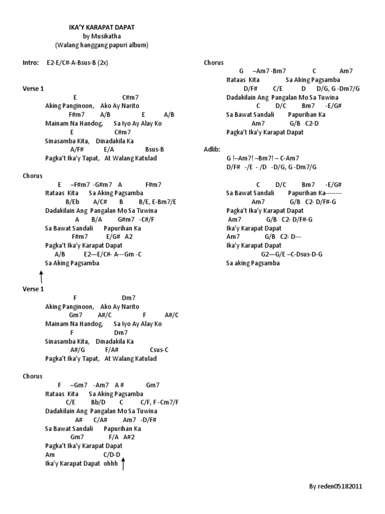There is no strumming pattern for this song yet. Aking Panginoon ako ay narito. Chords for Musikatha - Itatanghal kita.