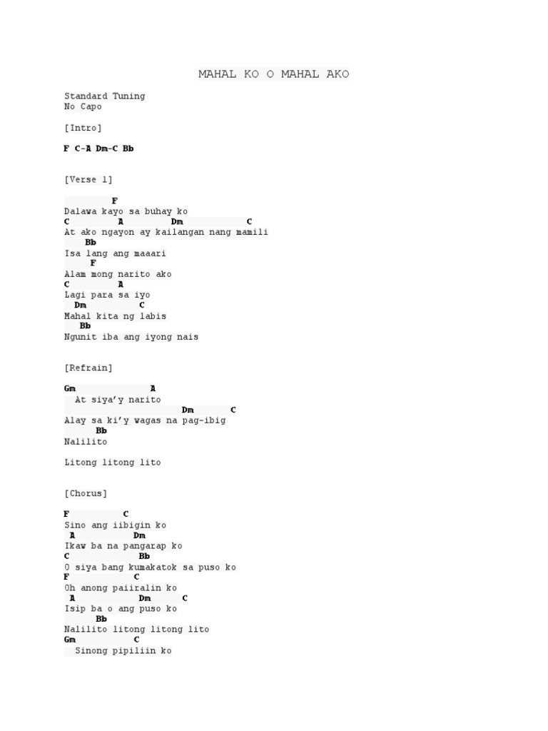 Mahal Ko O Mahal Ako Lyrics Chords Pdf